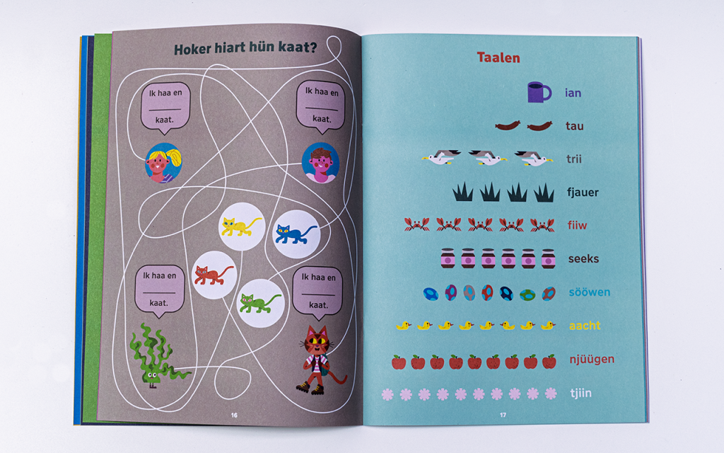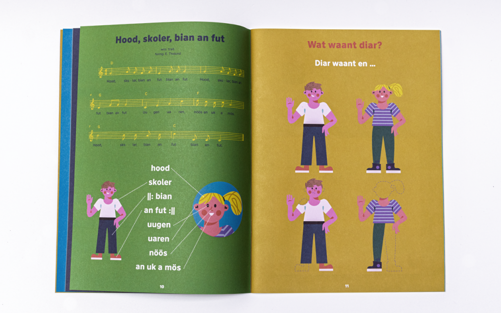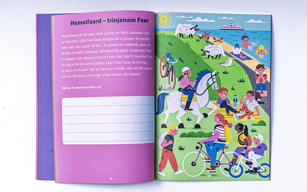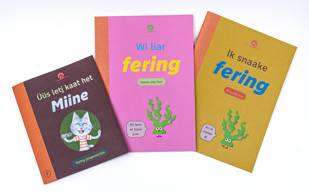 Die Ferring Stiftung, die sich um den Erhalt der Sprache kümmert, hat zu diesem Zweck Arbeitshefte konzipieren und gestalten lassen, die den Kindern einen barrierefreien, positiven und nachhaltigen Zugang zur Sprache ermöglichen soll. Das zentrale Thema dabei ist Teilhabe. Unter dem Motto „Wi liar fering“ („Wir lernen Friesisch“) sind zwei Arbeitshefte und ein Liederbuch entstanden, die einem einheitlichen Gestaltungskonzept folgen.