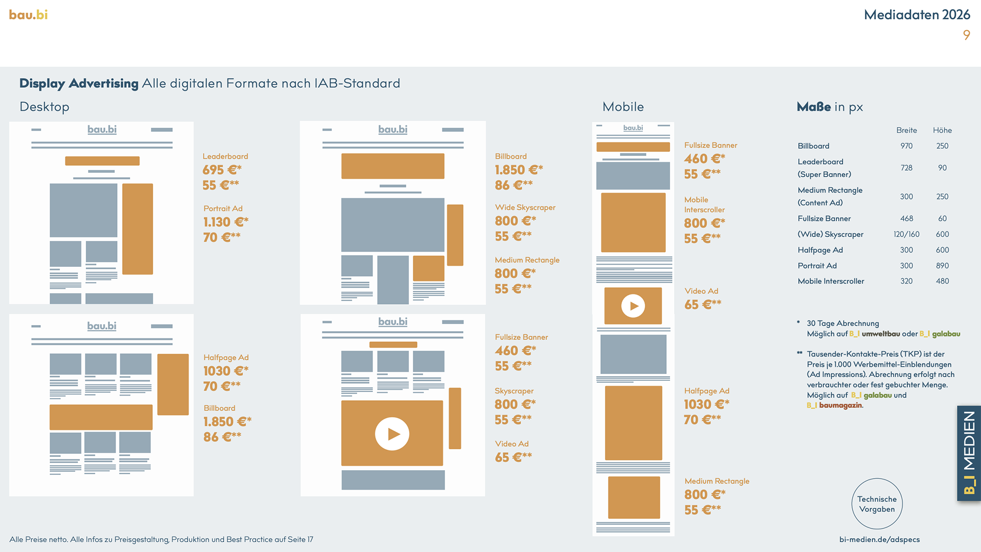 Die breit aufgestellte Redaktion liefert nun also unter neuem Namen täglich aktuellste Informationen rund um alle relevanten Themen der Baubranche. Konsequent, dass ich dann auch die neuen Mediadaten für das Portal und die Fachzeitschriften konzipiert und gestaltet habe. Hier sind sie abrufbar: