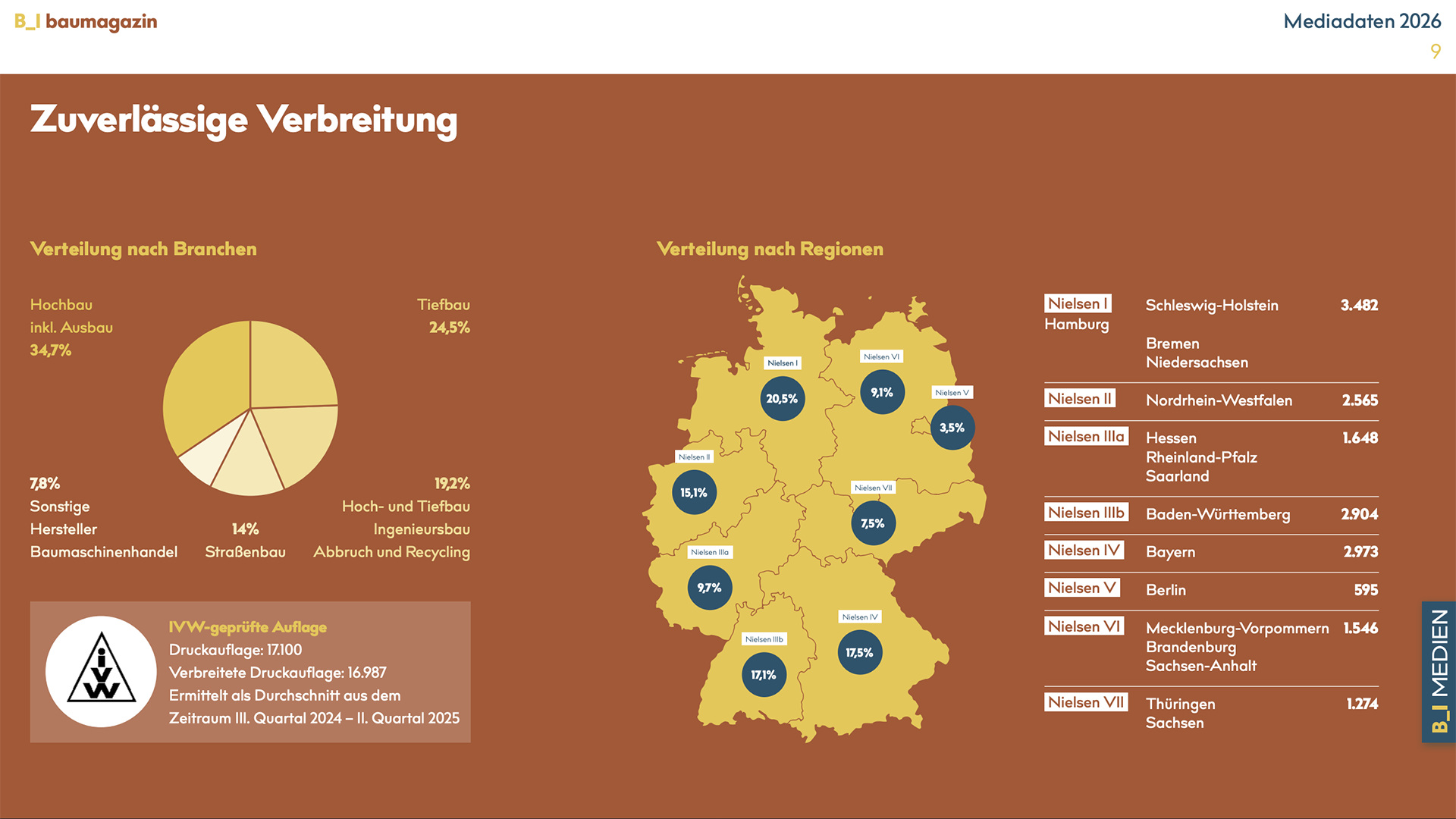 Wer also noch mal die eine oder andere Anzeige schalten möchte, sich vielleicht bei anderen Werbemöglichkeiten beraten lassen möchte oder einfach so mal einen Blick in die Bauwirtschaft werfen möchte: Die B_I Medien GmbH bietet da alle Möglichkeiten!