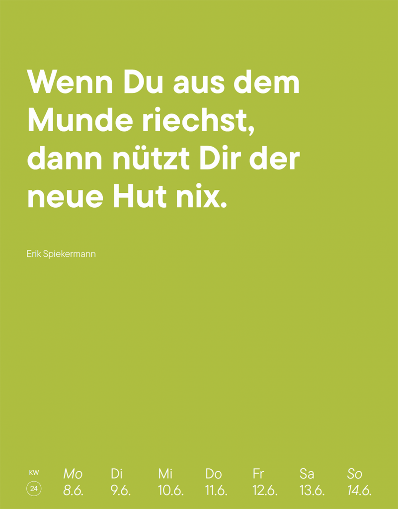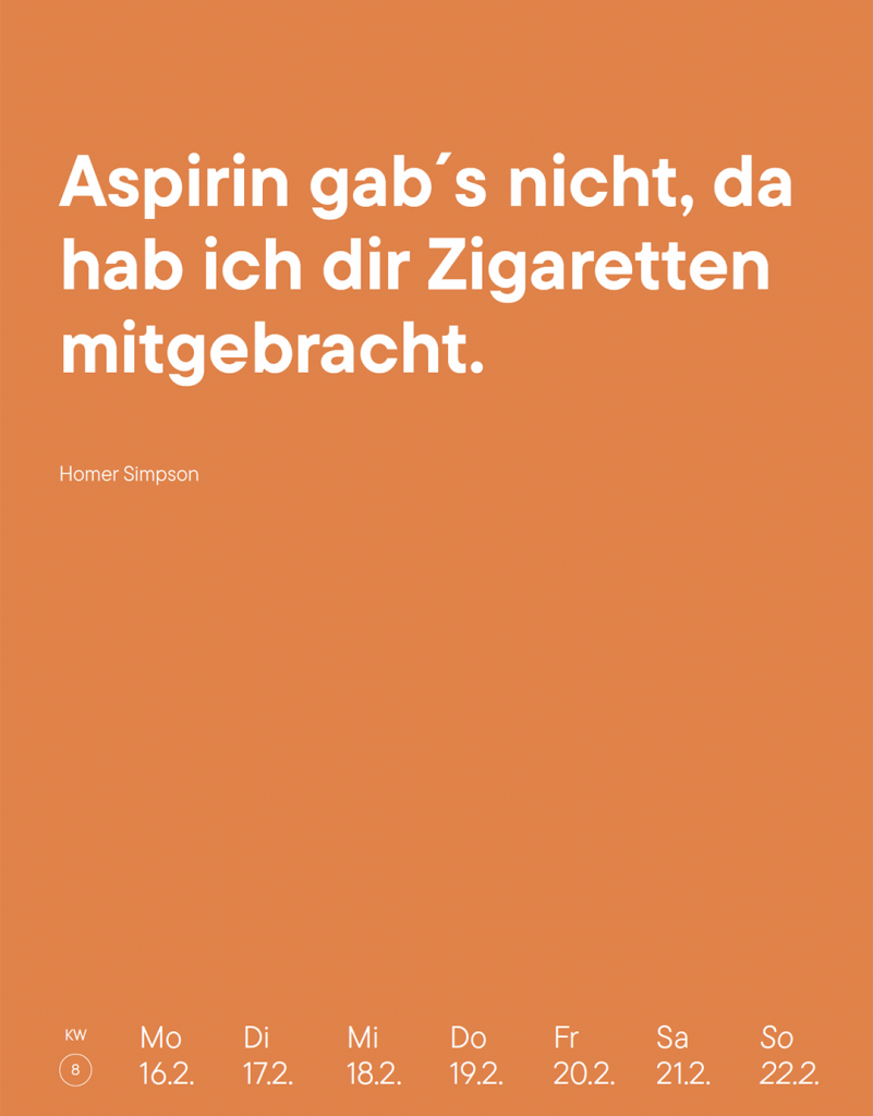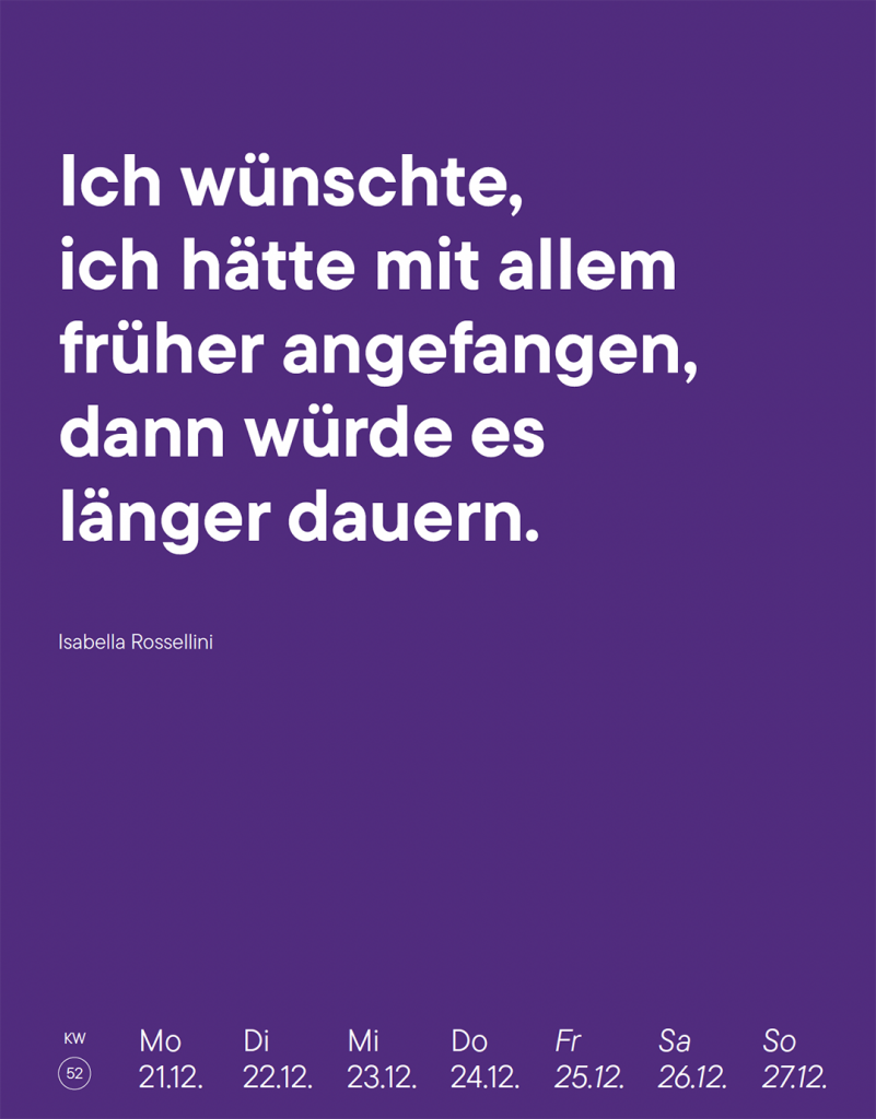 Ein Kalender für das Jahr 2026 mit Zitaten aus Kunst, Kultur und Gesellschaft. Ursprünglich ausgewählt für verschiedenste Projekte des Designstudios Aalhai. Hier erstmals frei und fröhlich zusammengestellt. Und damit mehr als exklusiv, denn die Auflage ist limitiert!