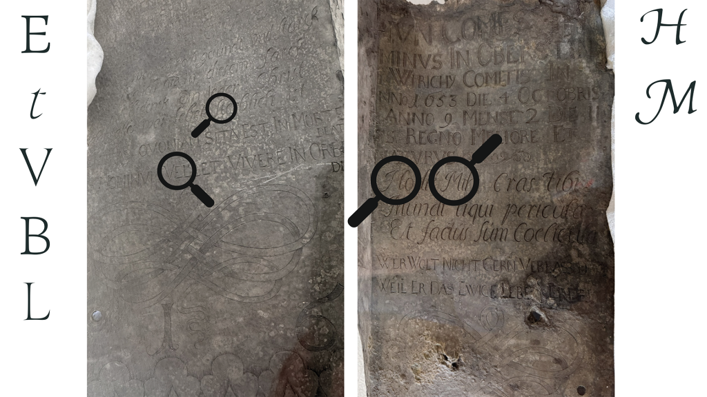 Schriften lassen sich aus historischen Inschriften (z.B. bei Särgen) ableiten: