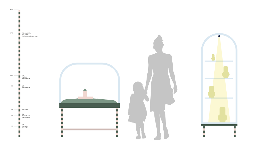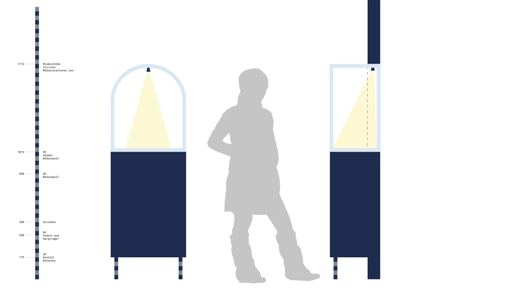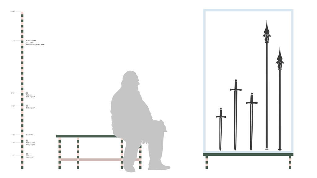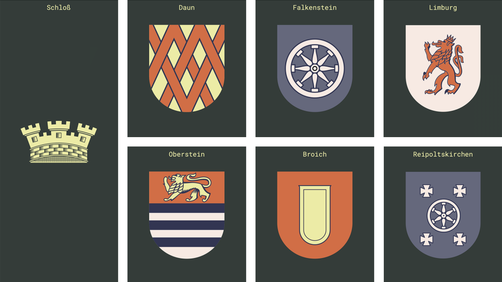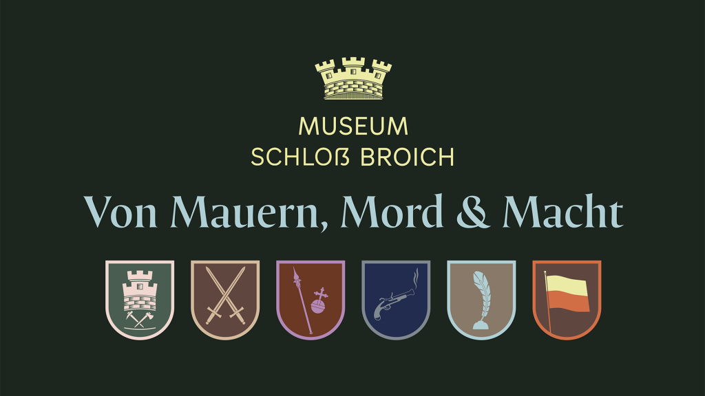 Im Großen und Ganzen ging es um die durchaus wilden Geschichten am und ums Schloss herum. Familiäre Angelegenheiten, Alkohol, Machtverlust, Tötungsdelikte und schmissige Klamotten in massiven Gemäuern. All diese Themen habe ich dann im grafischen Konzept für das Erscheinungsbild und im räumlichen Konzept für die Ausstellungsarchitektur einfließen lassen.