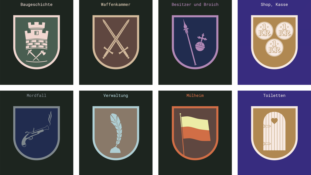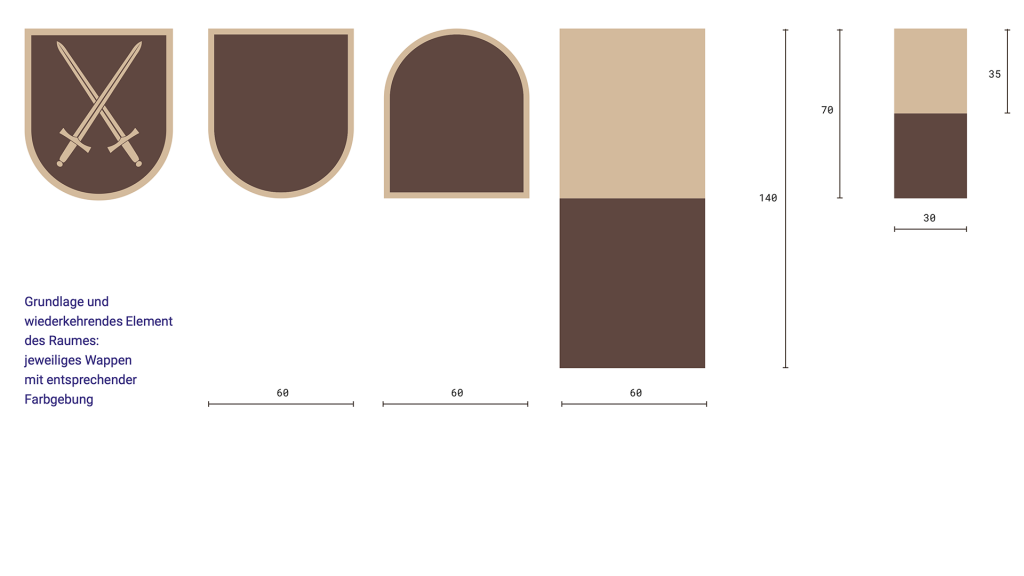 Und das grafische Grundelement ergibt sich aus vorhandenen Prägungen und dem Stadtwappen sowie der für damalige Zeiten typischen Heraldik. Daraus abgeleitet hat sich auch das thematische Leitsystem, das für das Haus gefordert war.