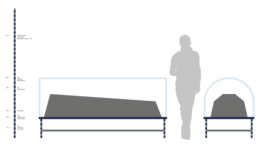 Und das Wappenelement dient auch noch als Grundlage für das Raster des Ausstellungsdesigns:
