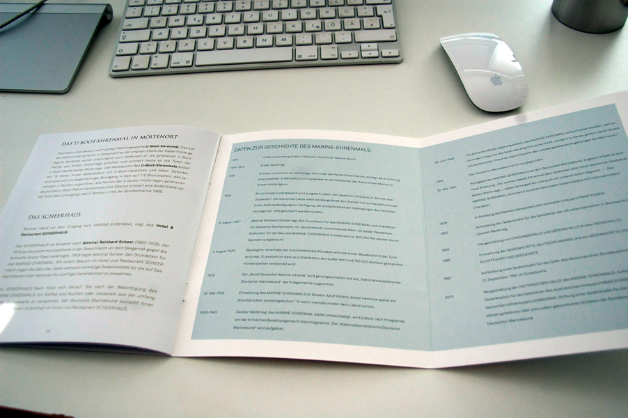 Druckfrisch und nur am Marine-Ehrenmal (bzw. über den Deutschen Marinebund) erhältlich: die neue Broschüre über das Marine-Ehrenmal. Der Gedenkstätte für die auf See Gebliebenen aller Nationen.