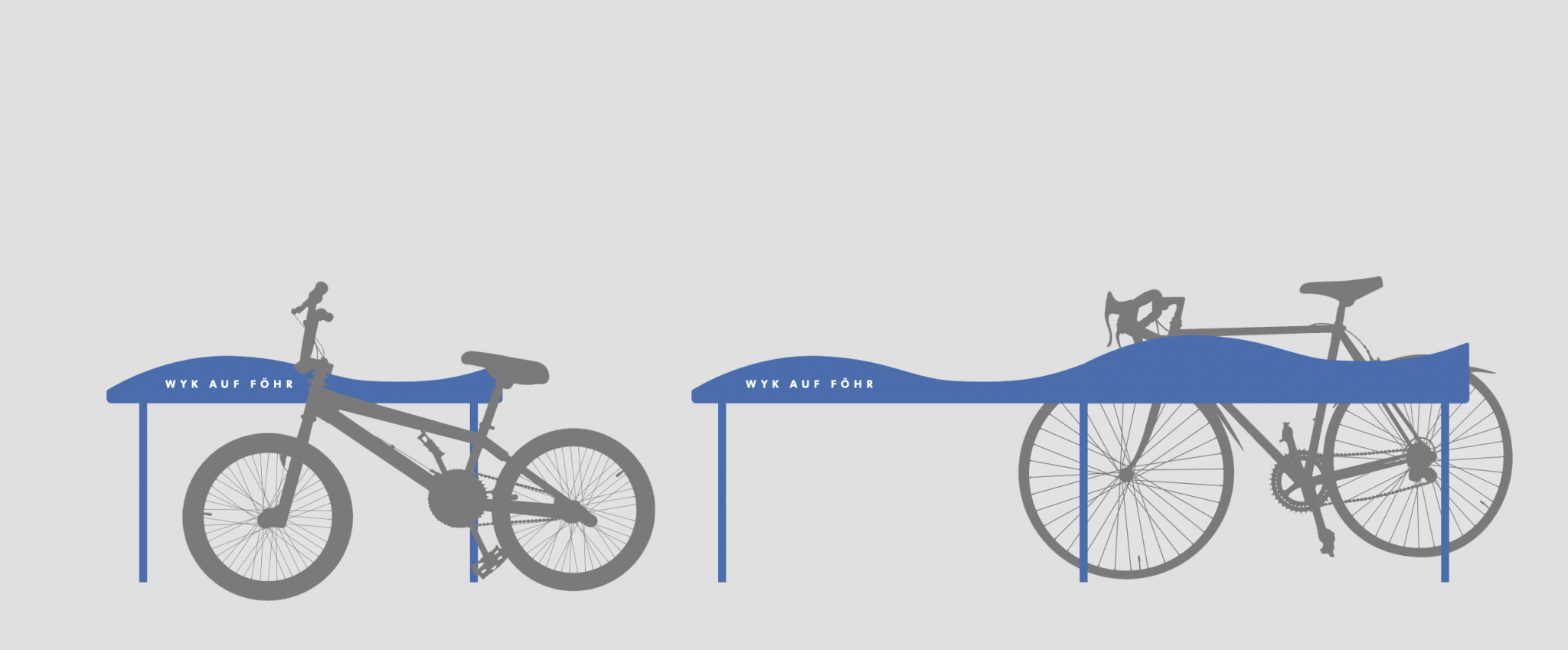 Wundern kann man sich nun auch über die neuen Wellen, die sich in der Wyker Stadtmöblierung zeigen. Bei einem Wellenbad kann man ja in der Tat von Wellen sprechen. Im öffentlichen Bereich Mülleimer, Fahrradständer, Beschilderungen oder Bänke mit einer visuellen Klammer in Form von Wellen zu belegen, ist spannend. Immerhin ist Föhr ja nicht Hawaii und Wellen gibt es hier nur durch a) Fährverkehr, b) rasante Sportbootfahrer oder c) bei Sturmflut.