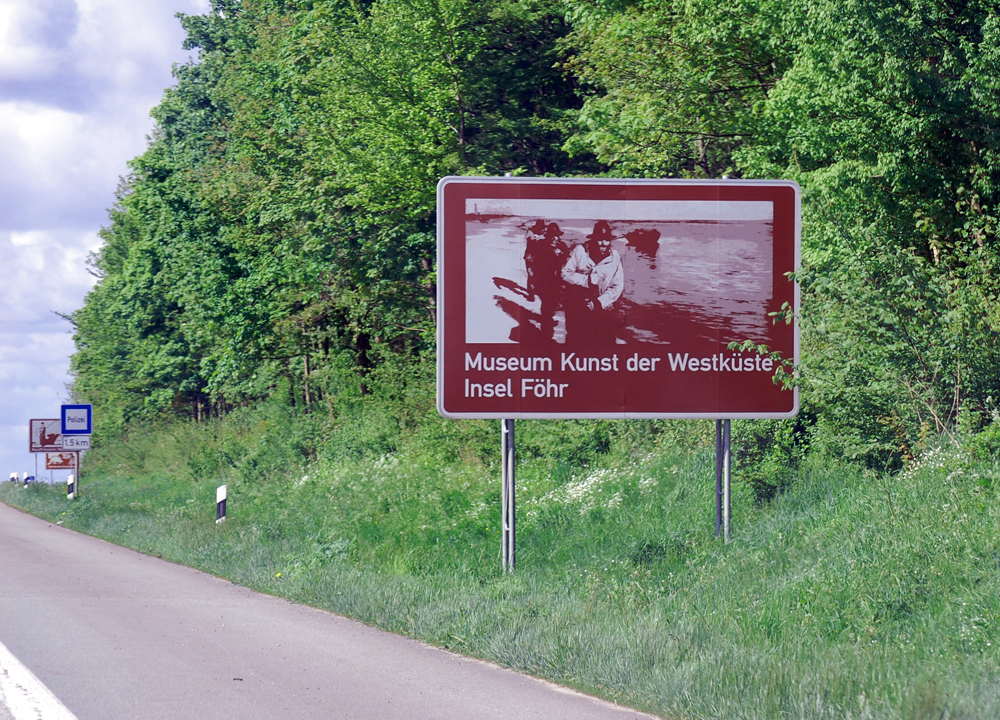(Das Originalbild, auf dem das Autobahnschild basiert, ist im Übrigen im Museum Kunst der Westküste auf Föhr zu entdecken, für dessen Corporate Design wir im vergangenen Jahr einen red dot design award gewonnen haben.)