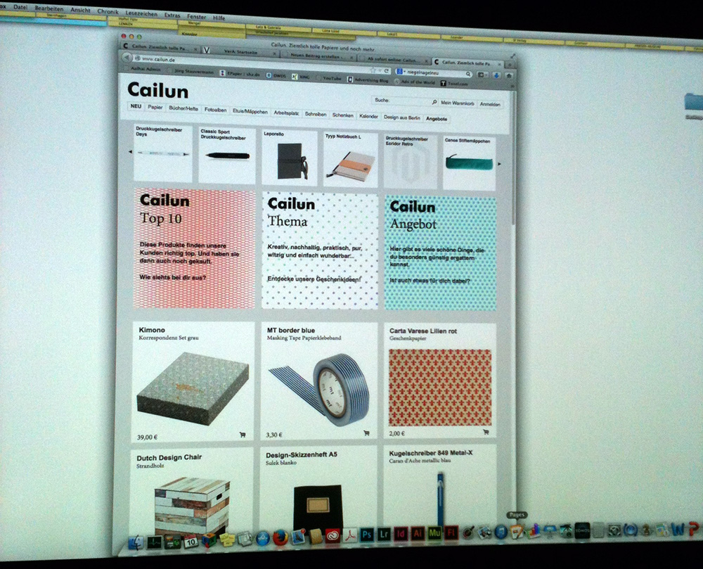 Im nigelnagelneuen Onlineshop Cailun.de gibt es ab sofort ziemlich tolle Papiere und noch mehr. Nachdem ich vor gut einem Jahr Namen und Claim entwickelt habe, folgte die Konzeption des variabel bemusterbaren Erscheinungsbildes.