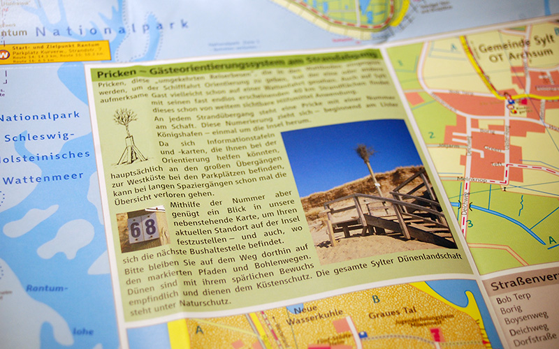 Das gilt vor allem für die neue Fahrrad- und Wanderkarte des Berliner SI-Verlags. Björn Behnke hat auf Basis meiner gestalterischen Konzeption für seine beliebten Ausflugskarten nach der Föhrer Karte als zweite die Sylter Karte aktualisiert.