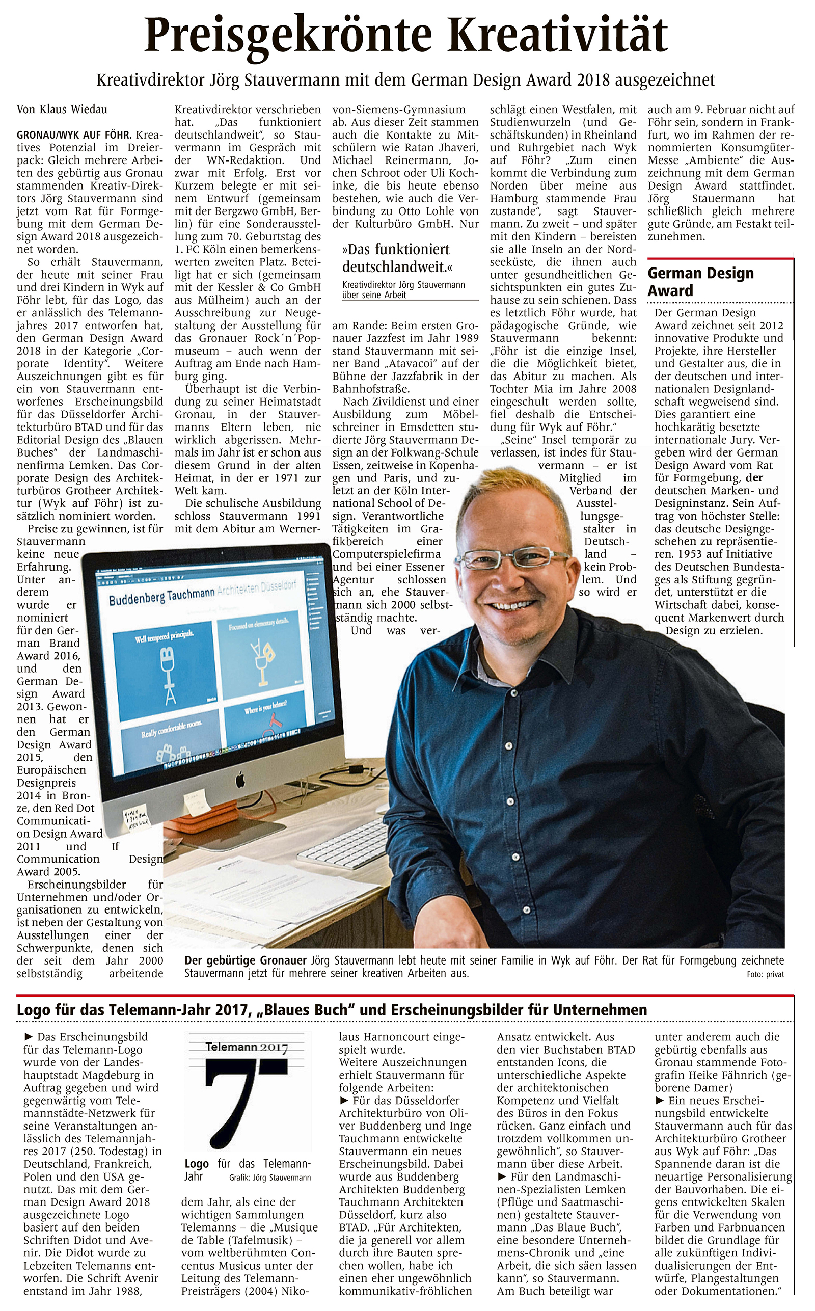 Preisgekrönte Kreativität aus Gronau 5. November 2017 by Jörg Stauvermann Kategorie: Auszeichnungen Das ist doch mal eine Überschrift, die man gerne sieht! In meiner »alten« Tageszeitung, den Westfälischen Nachrichten, hat Chefredakteur Klaus Wiedau kürzlich eine formschöne Reportage verfasst. Toll, dass man sich in der Heimatstadt immer noch gerne an uns (u.a. Michael Reinermann, Ratan Jhaveri, Jochen Schroot, Heike Fähndrich und Uli Kochinke) erinnert. Jörg Stauvermann Freier Kreativdirektor Beitrags-Navigation Vorheriger Beitrag Vorheriger Beitrag Nächster Beitrag Nächster Beiträg
