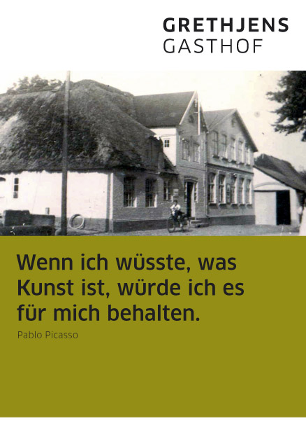 Und heiter das Leben. Hat Kurt Schwitters mal gesagt. Super, oder? Und wo passt dieses Zitat besser hin als auf die Visitenkarte eines Restaurants, das gleichzeitig auch Museumsgastronomie ist? Bei der ersten Serie der Visitenkarten geben sich allerhand nette Menschen die Klinke in die Hand: Martin Luther, Pablo Picasso, Oscar Wilde oder Grethjen Hayen.
