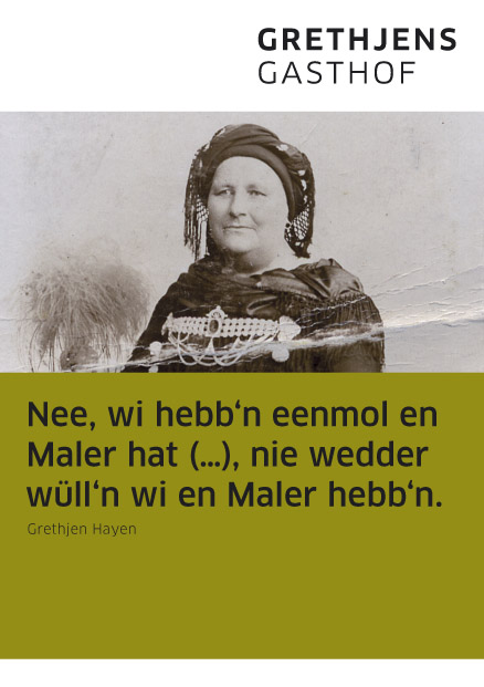 Was? Sie kennen Grethjen Hayen nicht? Dann sollten Sie mal schnell nach Föhr kommen, nach Alkersum radeln und in Grethjens Gasthof tafeln. Dort bekommen Sie dann auch einige dieser Karten: