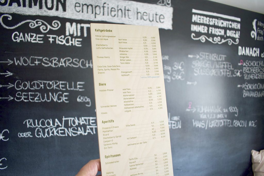 Föhrs kleines Restaurant Saimons hat rechtzeitig zur Saison 2019 neue Getränkekarten und -bretter erhalten. Alles im robusten Look, der das handfeste Restaurant so auszeichnet.