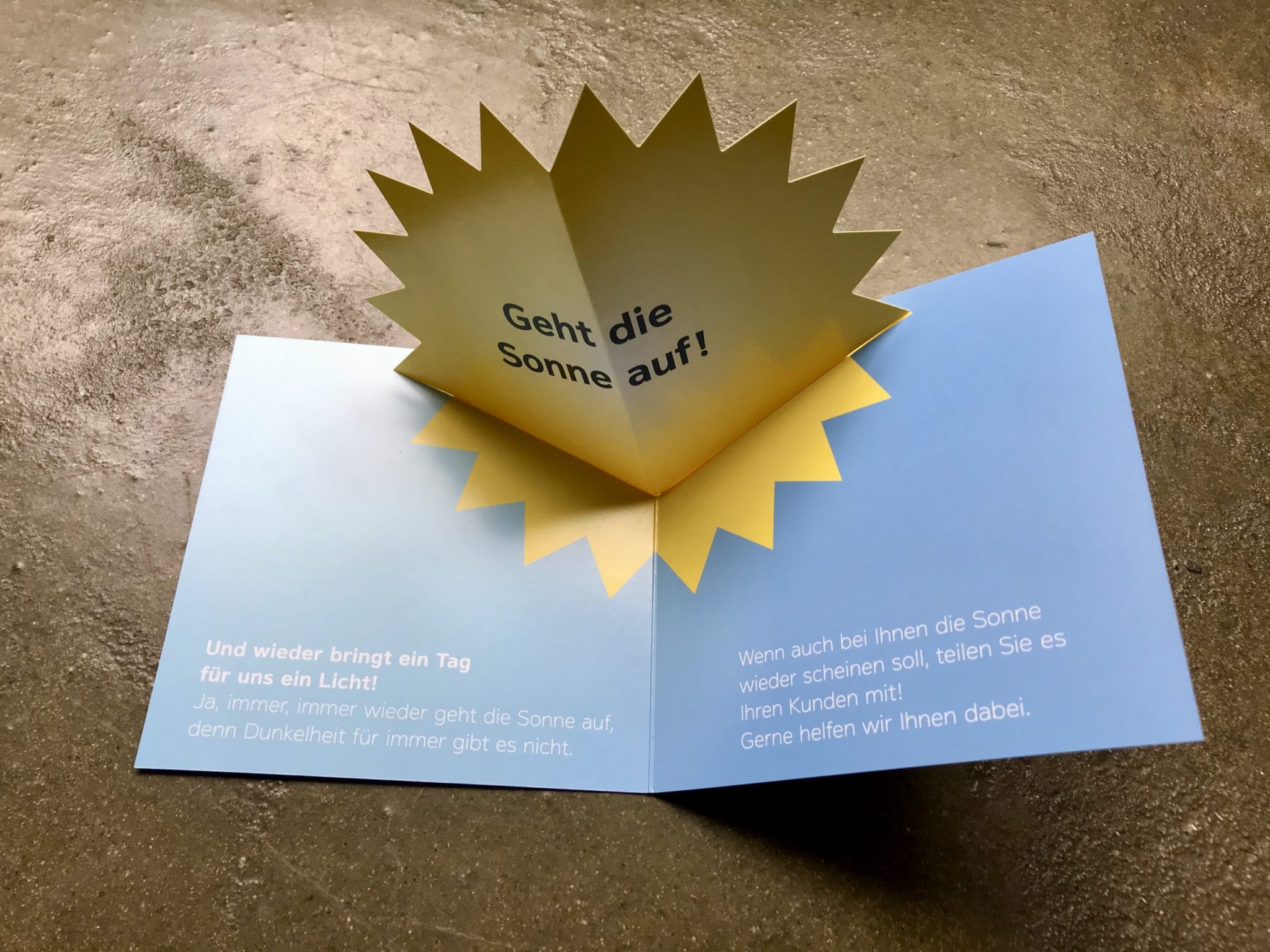 Heute ist Ihre schöne Karte auf meinem Schreibtisch gelandet. Vielen Dank dafür 😊 Auch an uns ist die Corona Krise nicht spurlos vorbei gegangen, doch wie Sie so schön formuliert haben, die dunklen Wolken ziehen auch weiter. Gerne und hoffentlich auch bald kommen wir auf Ihre Leistungen zurück. Über eine gemeinsame Zusammenarbeit würden wir uns auf jeden Fall freuen.